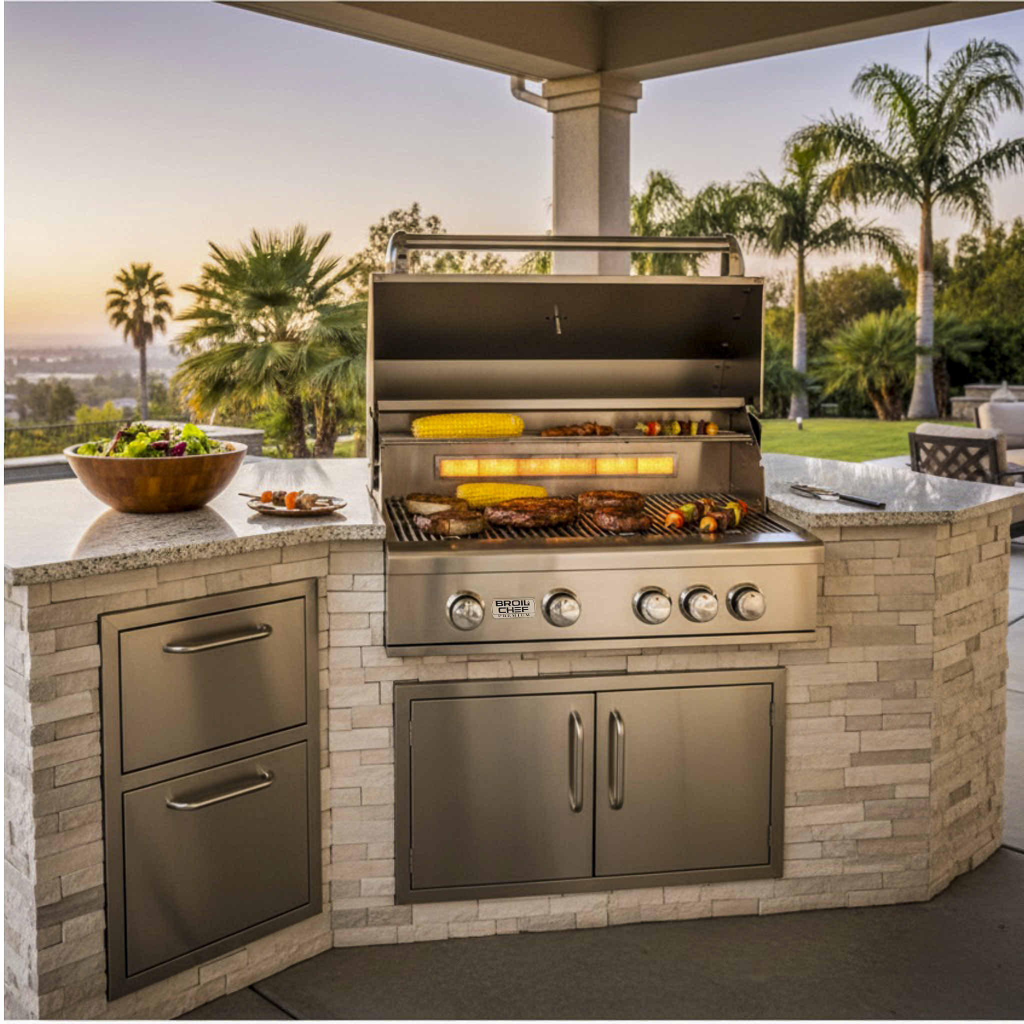 Broilchef grills offer a superior blend of lasting durability and accessible luxury. Constructed from solid cast Stainless Steel #304-grade stainless steel with precision assembly—no weak weld points—this Broilchef CSA /SGS propane / Natural grill is engineered to resist the harshest outdoor elements. Its double-lined hood not only retains heat efficiently but also prevents discoloration, keeping your grill pristine over time. All backed by an industry-leading lifetime warranty that speaks to Broilchef’s commitment to quality. -