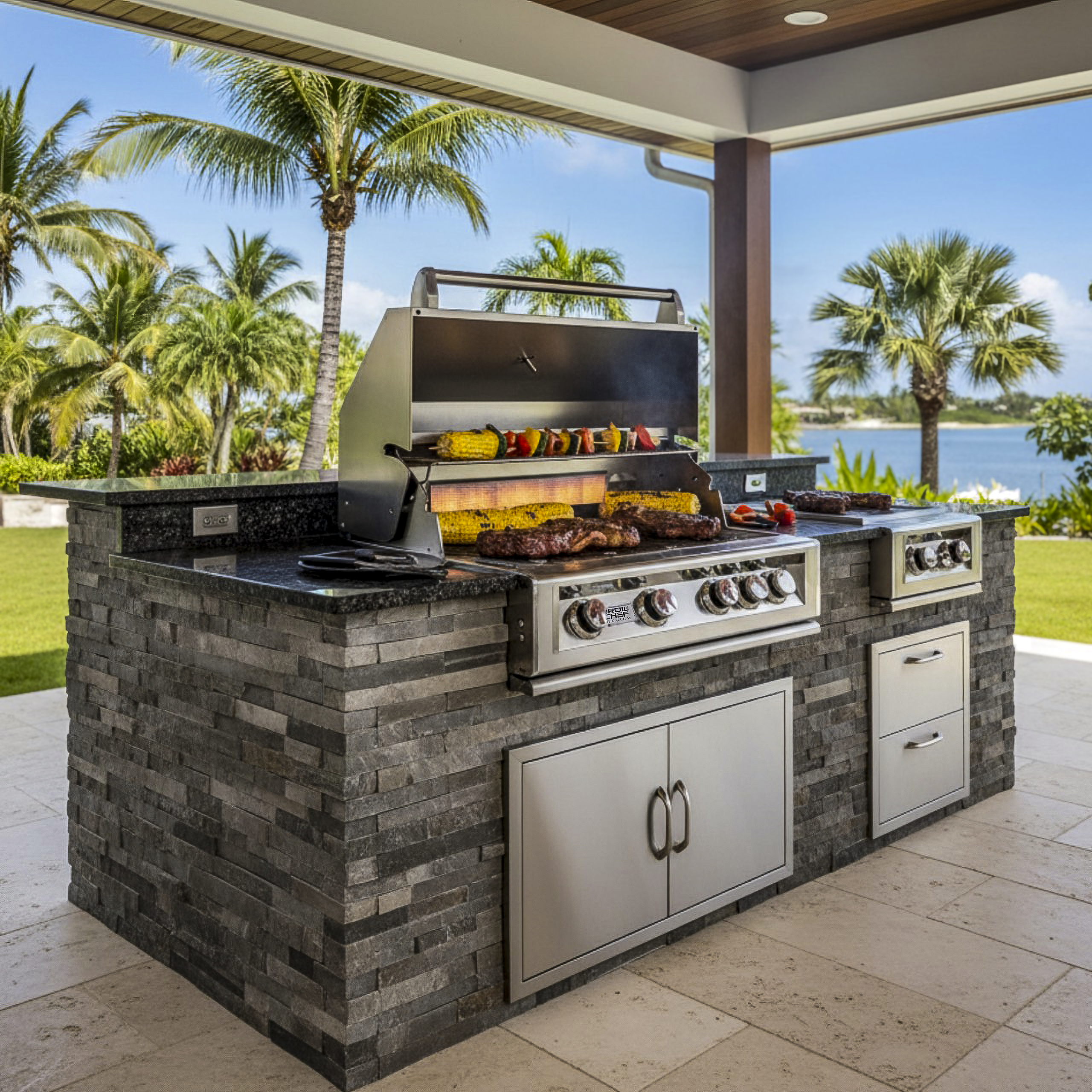- Propane-ready out of the box and easily convertible to natural gas, this outdoor kitchen comes complete with a regulator, hose, and tank holder for flexible installation.
