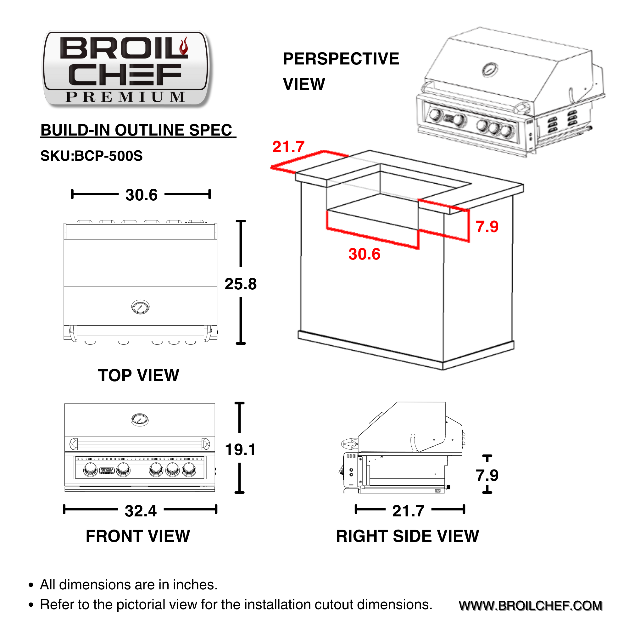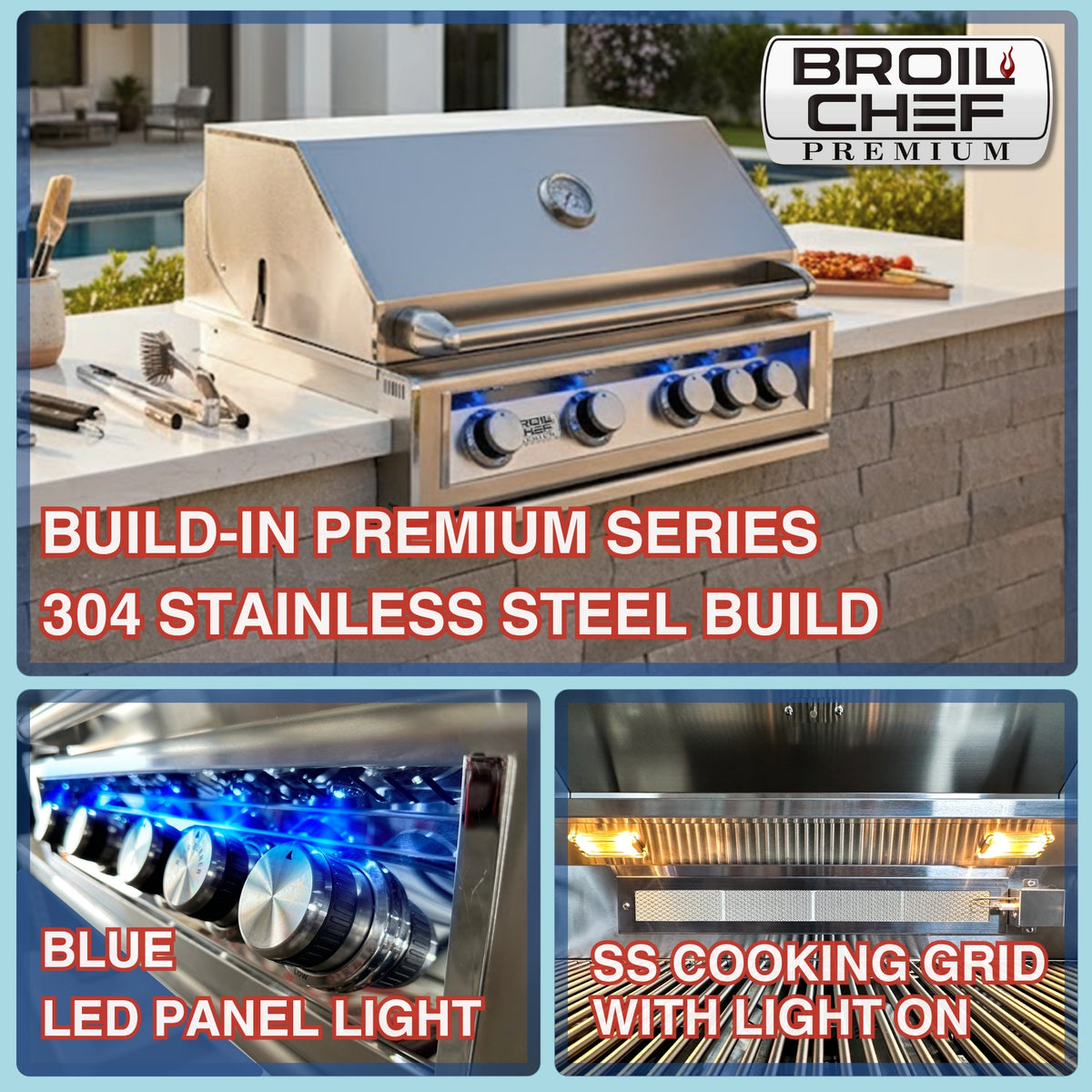 Broilchef 32-Inch 4-Burner W/ Rear Infrared Burner Halogen/ Led grill lights Built-In Gas Grill