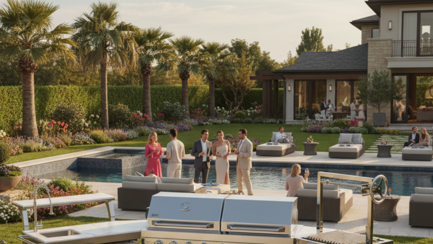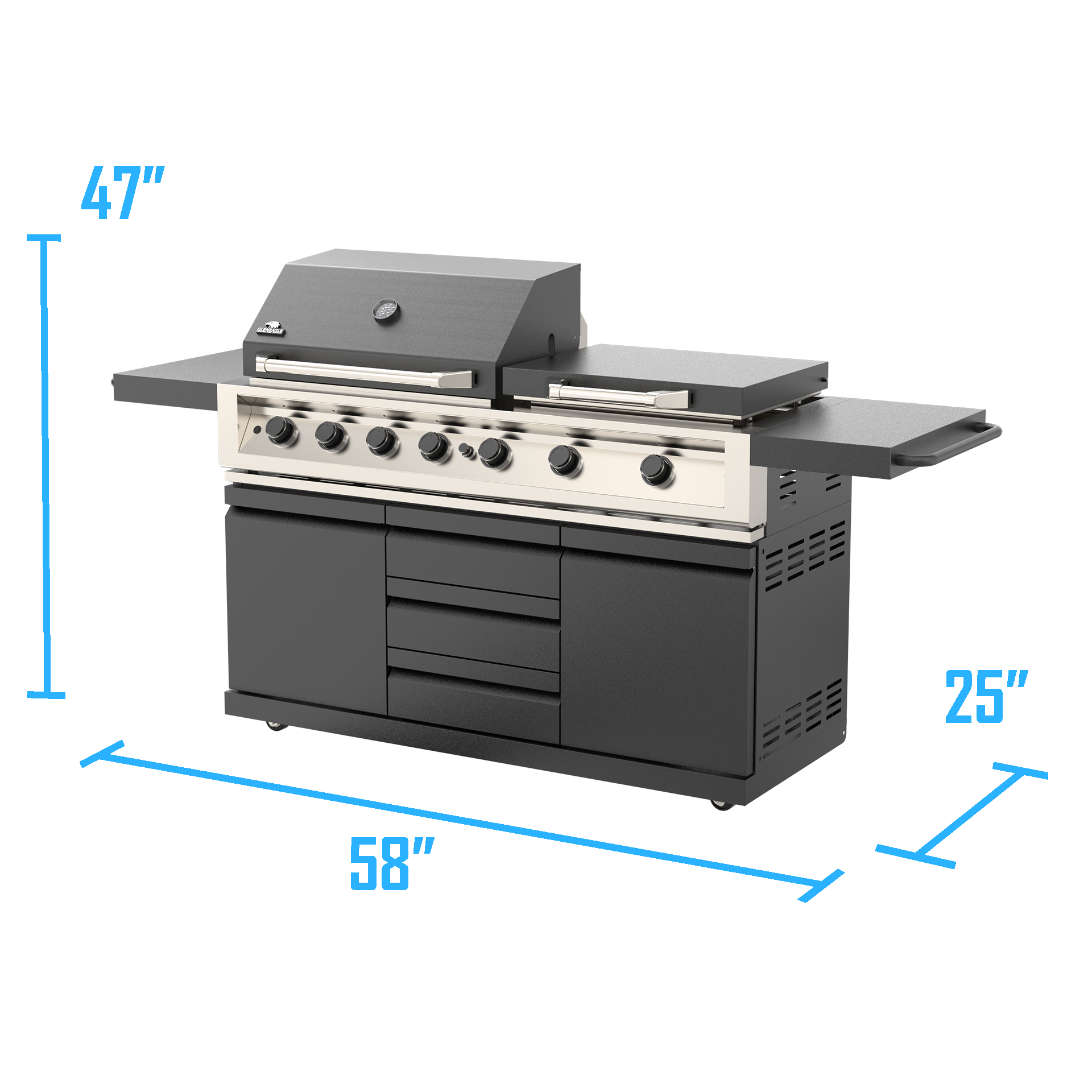 Gleneagle 7 Burner Outdoor Kitchen Suite with Grill, Griddle and Side Tables