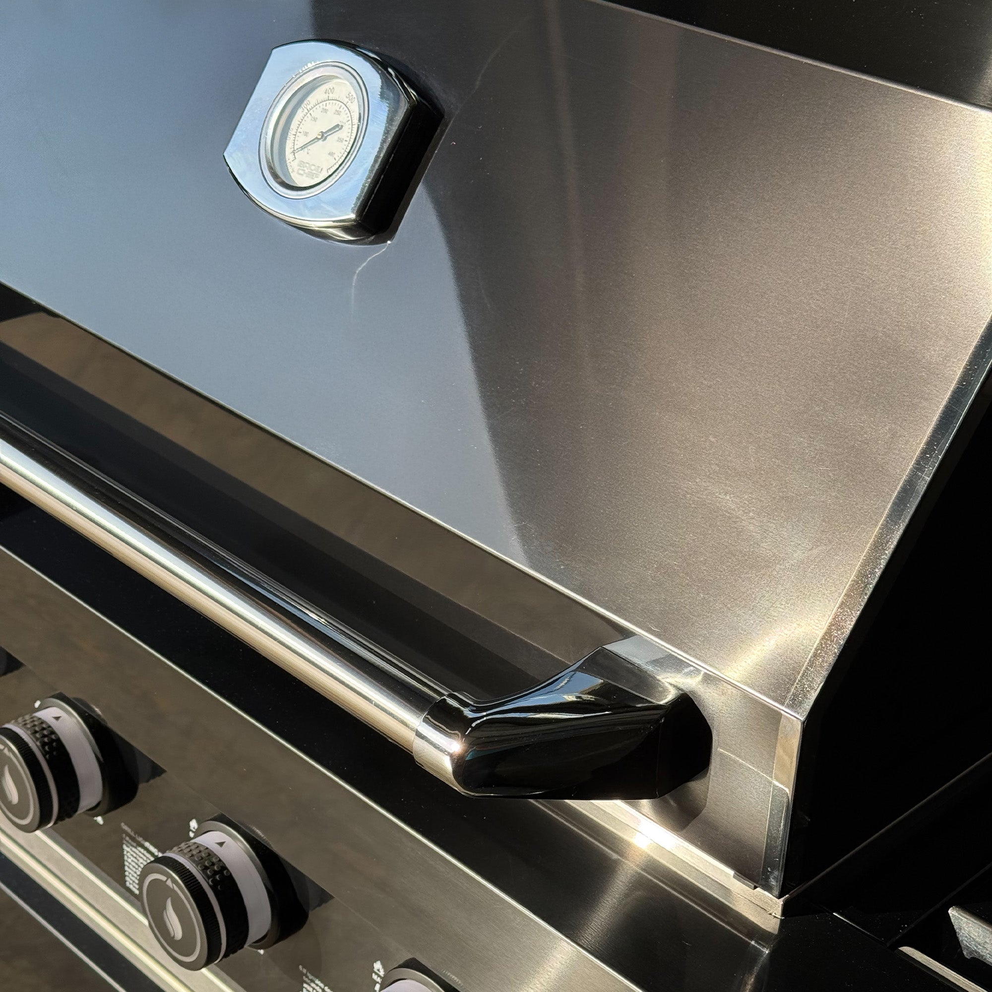 Evening Cooking Ready – LED knob lights (blue-to-red) and halogen grill lights for flawless nighttime grilling.