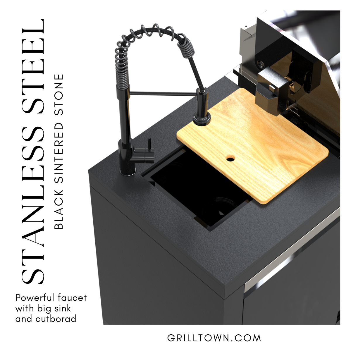 - Premium Build – Marine-grade SS304 hood with black SS201 cabinetry for durability, weather resistance, and modern style.